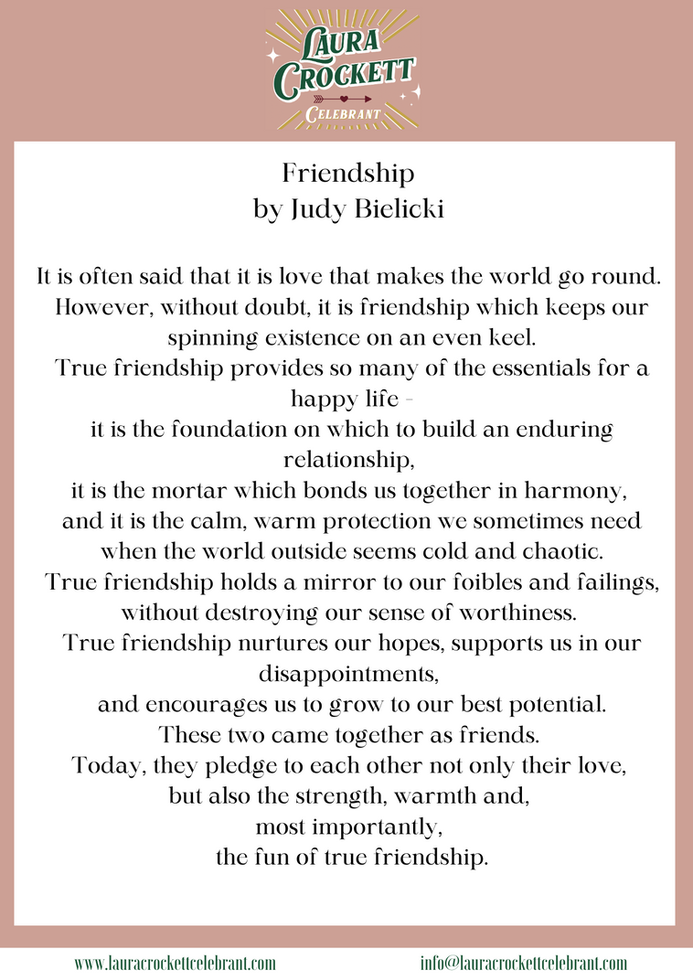 If you need any help with choosing readings for your ceremony or would like me to write a personalised poem for you, click here to get in touch.